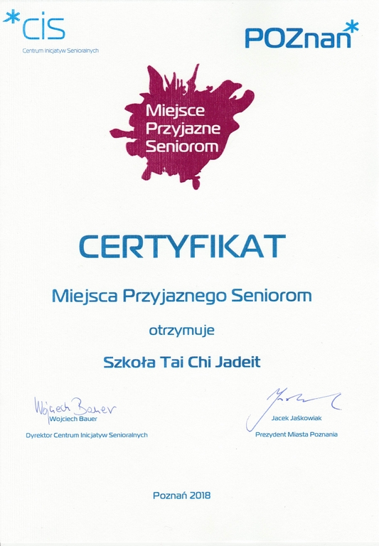 Szkoła Tai Chi Jadeit uzyskała certyfikat